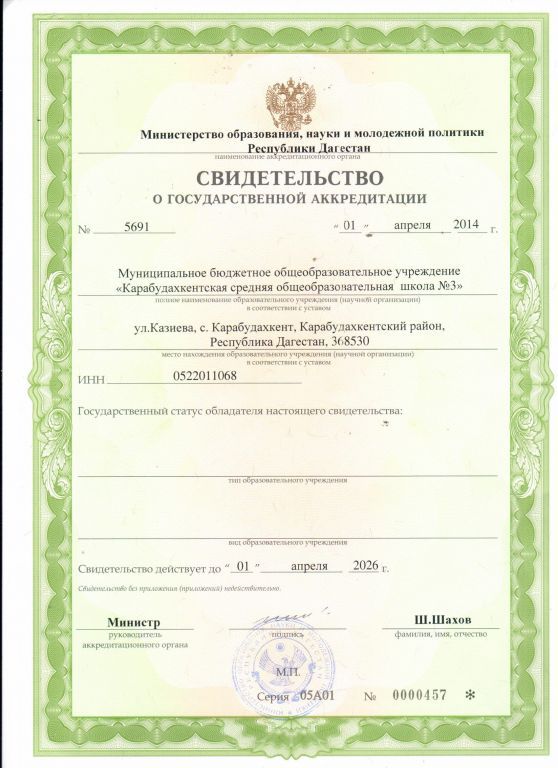 Муниципальное бюджетное общеобразовательное учреждение "Карабудахкентская СОШ №3"